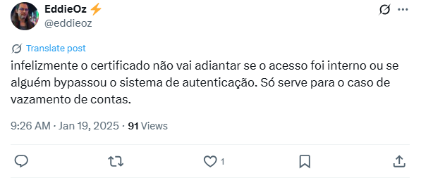 (2) “infelizmente o certificado não vai adiantar se o acesso foi interno ou se alguém bypassou o sistema de autenticação. […]”