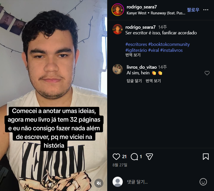 1. criar ou escrever fanfics — histórias ficcionais produzidas por fãs a partir de obras já existentes;