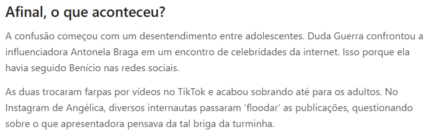 (1) “[…] No Instagram de Angélica, diversos internautas passaram ‘floodar’ as publicações, questionando sobre o que apresentadora pensava da tal briga da turminha. […]”