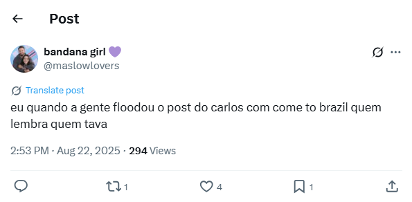 (2) “eu quando a gente floodou o post do carlos com come to brazil quem lembra quem tava”