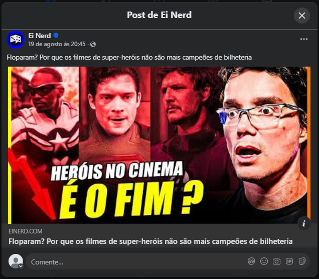 Fonte: https://www.facebook.com/einerd.com.br/posts/floparam-por-que-os-filmes-de-super-her%C3%B3is-n%C3%A3o-s%C3%A3o-mais-campe%C3%B5es-de-bilheteria/1335331001287749/. Acesso em: 18 set. 2025.