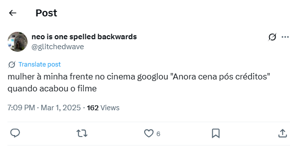 (2) “mulher à minha frente no cinema googlou “Anora cena pós créditos” quando acabou o filme”