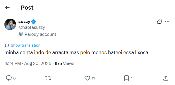 Fonte: https://x.com/hablasuzzy/status/1958248678516518947. Acesso em: 06 dez. 2025.