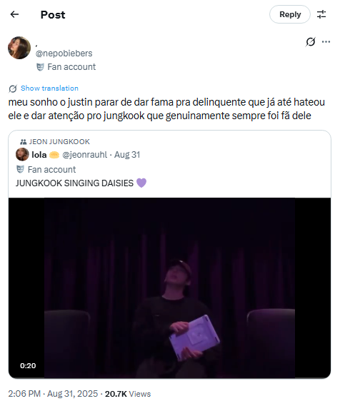 Fonte: https://x.com/nepobiebers/status/1962200434229072219. Acesso em: 06 dez. 2025.