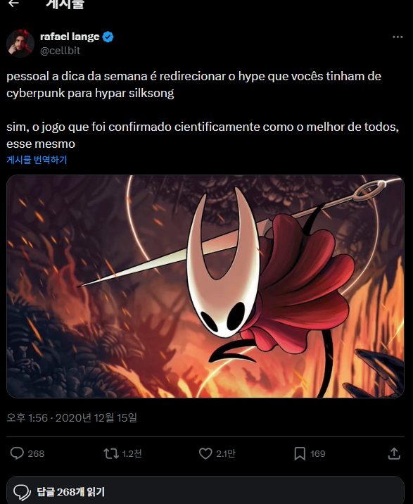 (2) “pessoal a dica da semana é redirecionar o hype que vocês tinham de cyberpunk para hypar silksong […]”