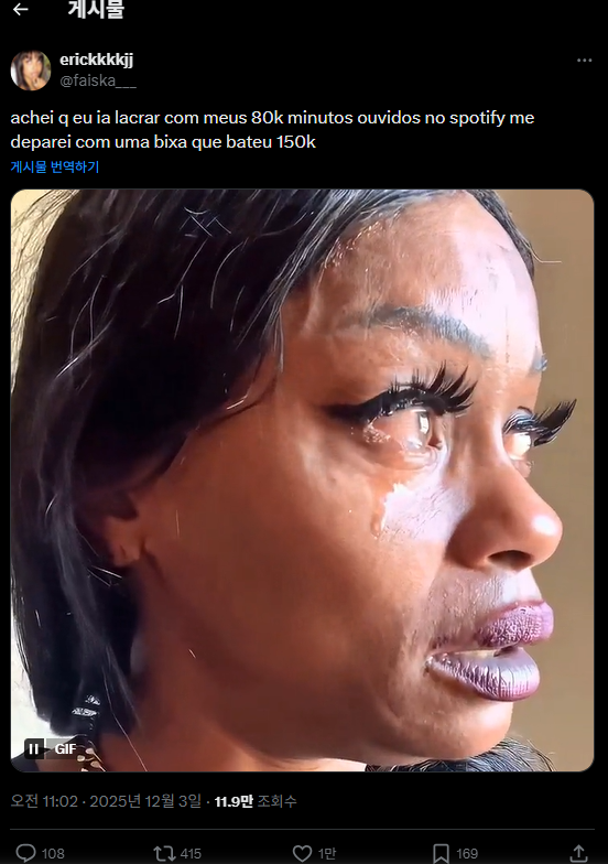 (1) “achei q eu ia lacrar com meus 80k minutos ouvidos no spotify me deparei com uma bixa que bateu 150k”