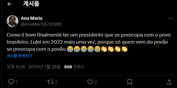 (2) “[…] Lulei em 2022 mais uma vez, porque só quem vem do povão se preocupa com o povão.😂😂😂😂😂👏👏👏👏”