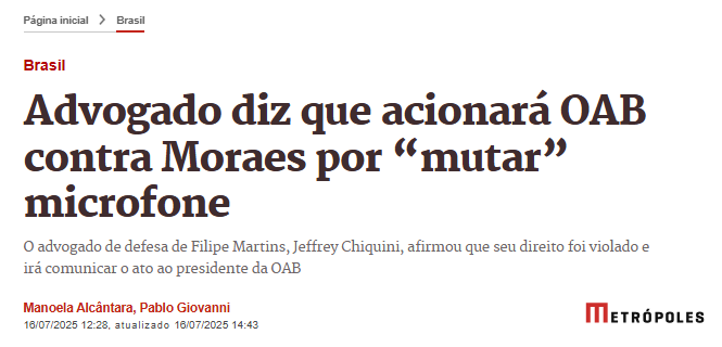 Fonte: https://www.metropoles.com/brasil/video-advogado-diz-que-acionara-oab-contra-moraes-por-mutar-microfone. Acesso em: 07 dez. 2025.