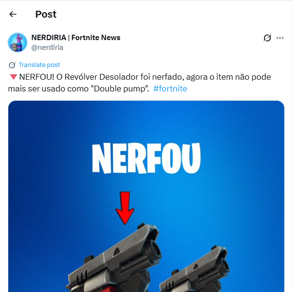 (2) “🔻NERFOU! O Revólver Desolador foi nerfado, agora o item não pode mais ser usado como “Double pump”. #fortnite”