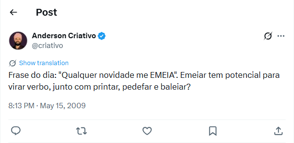 (2) “[…] Emeiar tem potencial para virar verbo, junto com printar, pedefar e baleiar?”
