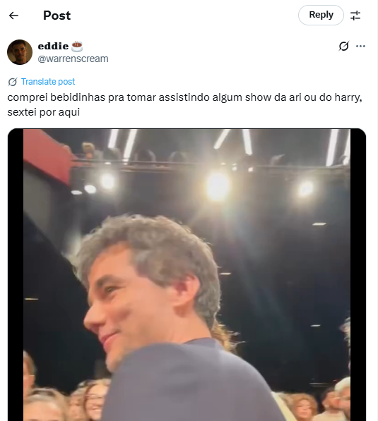 (2) “comprei bebidinhas pra tomar assistindo algum show da ari ou do harry, sextei por aqui”
