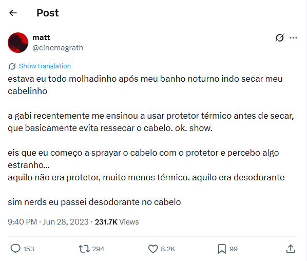 (1) “[…] eis que eu começo a sprayar o cabelo com o protetor e percebo algo estranho… […]”