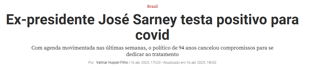 Fonte: https://veja.abril.com.br/coluna/maquiavel/ex-presidente-jose-sarney-testa-positivo-para-covid/. Acesso em: 15 dez. 2025.