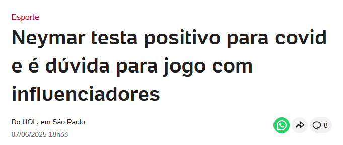 Fonte: https://www.uol.com.br/esporte/futebol/ultimas-noticias/2025/06/07/neymar-testa-positivo-para-covid-e-e-duvida-para-jogo-com-influenciadores.htm. Acesso em: 15 dez. 2025.